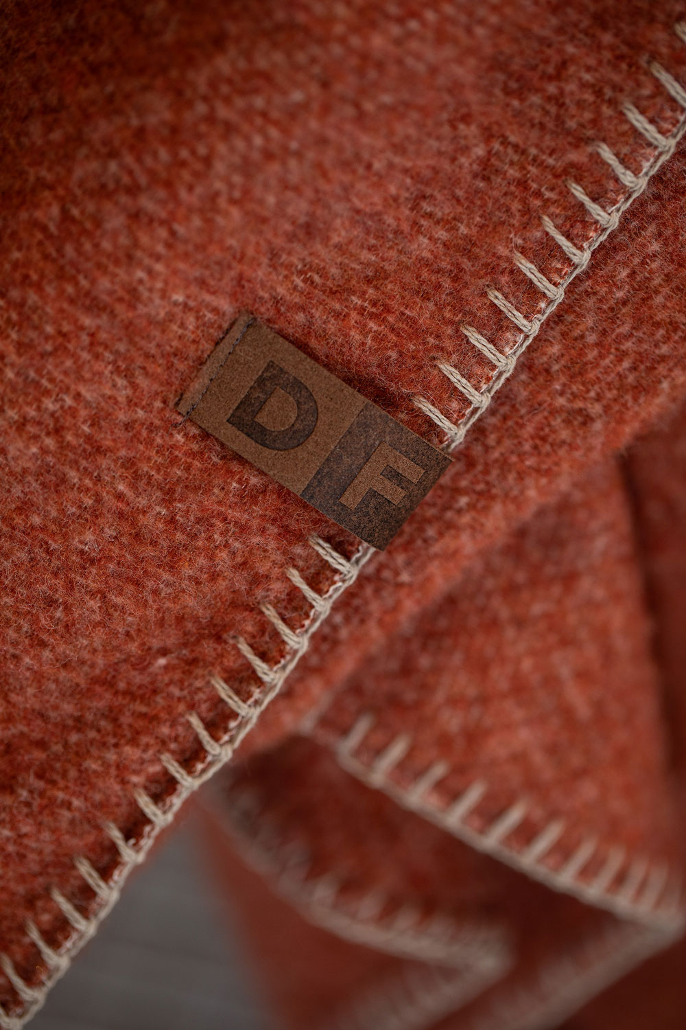 De diepe terracotta tint geeft het plaid een rustige, natuurlijke uitstraling die prachtig past in moderne en klassieke woonstijlen.